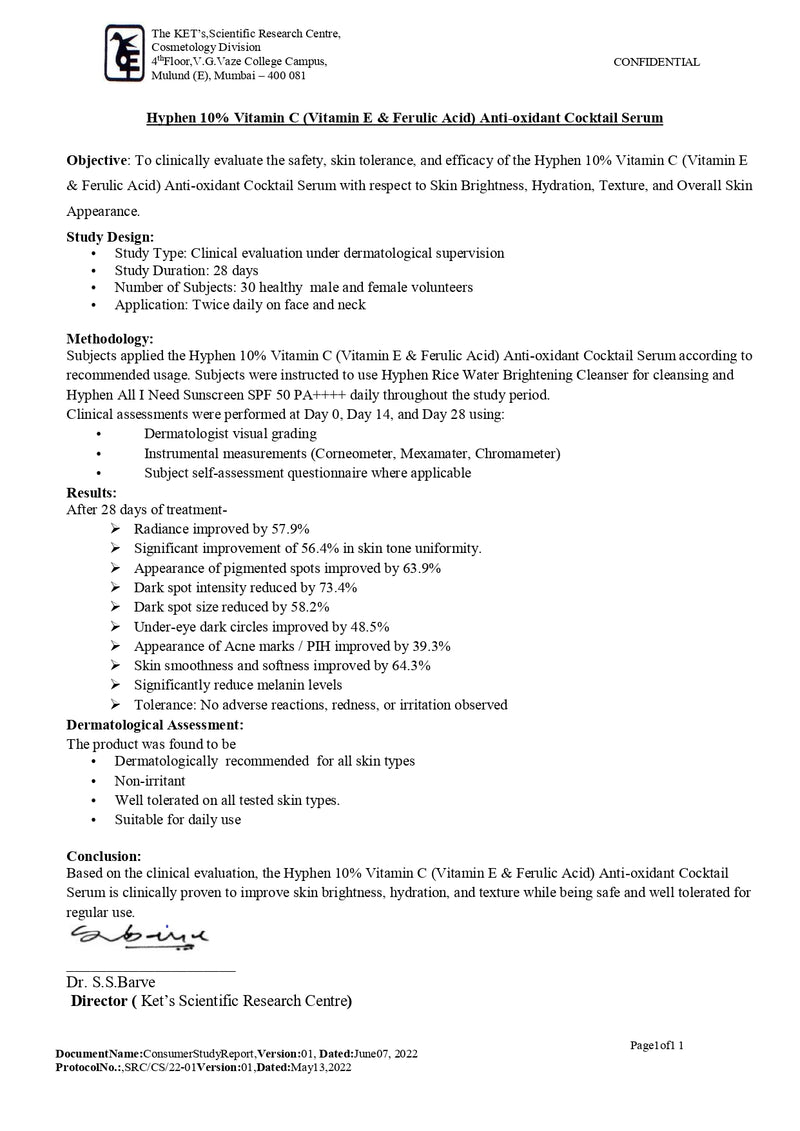 At Hyphen, we have built high-performance solution to solve multiple skin concerns. We have researched and gathered the best of efficacious ingredients from the world of nature & science, all hyphened together. All our products are vegan, clean & dermatologically tested, making it good for you & the planet. HAVE - IT - ALL!