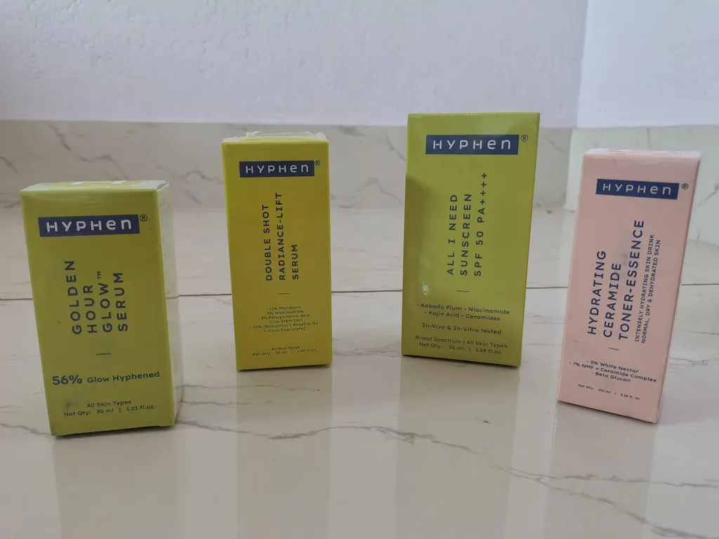 At Hyphen, we have built high-performance solution to solve multiple skin concerns. We have researched and gathered the best of efficacious ingredients from the world of nature & science, all hyphened together. All our products are vegan, clean & dermatologically tested, making it good for you & the planet. HAVE - IT - ALL!