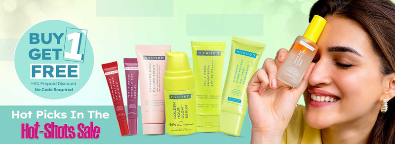 At Hyphen, we have built high-performance solution to solve multiple skin concerns. We have researched and gathered the best of efficacious ingredients from the world of nature & science, all hyphened together. All our products are vegan, clean & dermatologically tested, making it good for you & the planet. HAVE - IT - ALL!