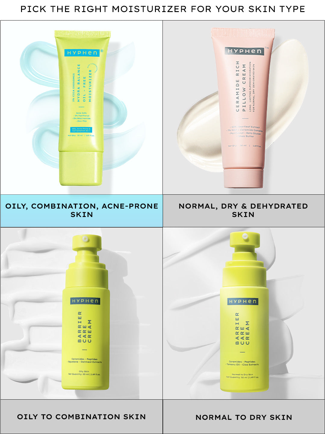 At Hyphen, we have built high-performance solution to solve multiple skin concerns. We have researched and gathered the best of efficacious ingredients from the world of nature & science, all hyphened together. All our products are vegan, clean & dermatologically tested, making it good for you & the planet. HAVE - IT - ALL!
